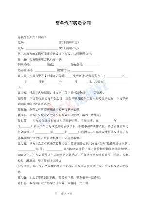 简单车辆买卖合同范本