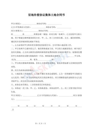 征地补偿协议集体土地合同书