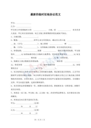 最新的临时征地协议范文