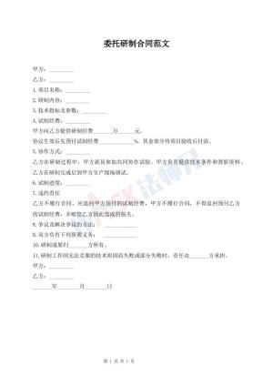 委托研制合同范文