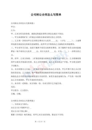 公司转让合同怎么写简单