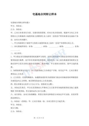 宅基地合同转让样本