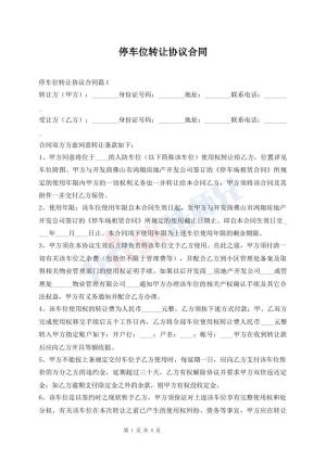 停车位转让协议合同