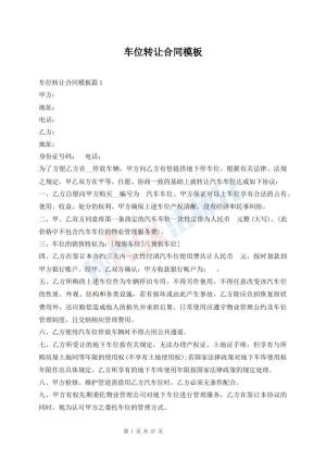 车位转让合同模板