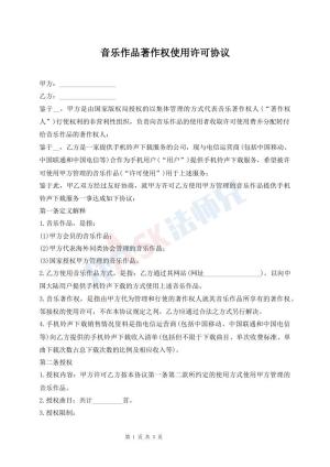 音乐作品著作权使用许可协议