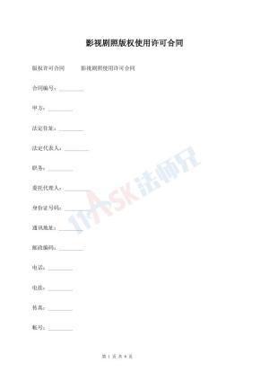 影视剧照版权使用许可合同