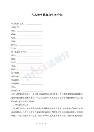 作品数字化版权许可合同