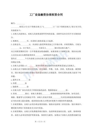 工厂设备融资协商租赁合同