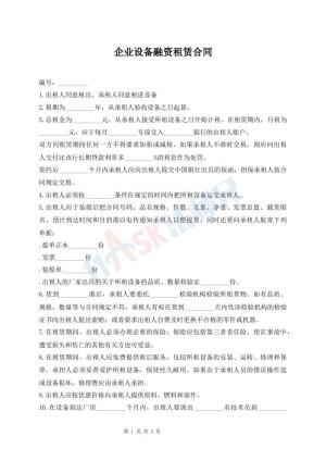 企业设备融资租赁合同