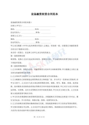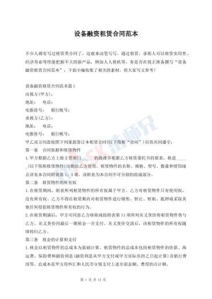设备融资租赁合同范本