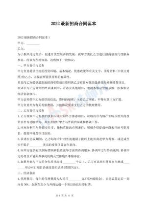 2022最新招商合同范本