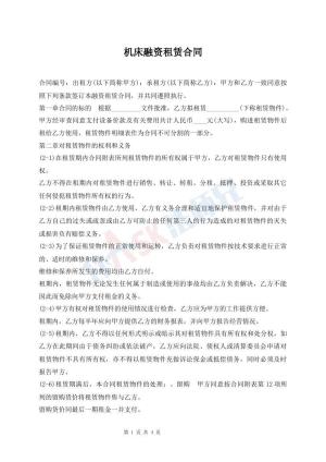 机床融资租赁合同